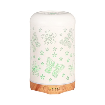 500ml forest metal aroma diffuser 1.500ml water capacity 2. Forest metal cover 3. Ultrasonic humidifier can add essential oils 4.4 spray timing mode (Timing 1H /3H /6H /ON) 5.7 Color LED light, can be a constant light, the light can be turned off separately